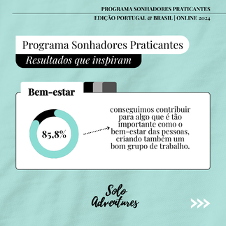 A edição digital 2023/2024, realizada em Portugal e no Brasil, reafirma o compromisso da Solo Adventures em apoiar pessoas de diferentes contextos a transformarem as suas vidas, com resultados positivos e testemunhos inspiradores a comprovarem o seu impacto.